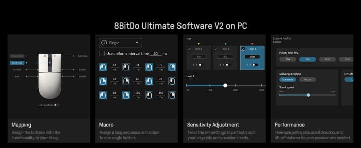 Personaliza fácilmente la asignación de botones y optimiza el rendimiento de tu ratón con el software 8BitDo Ultimate.