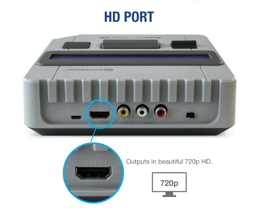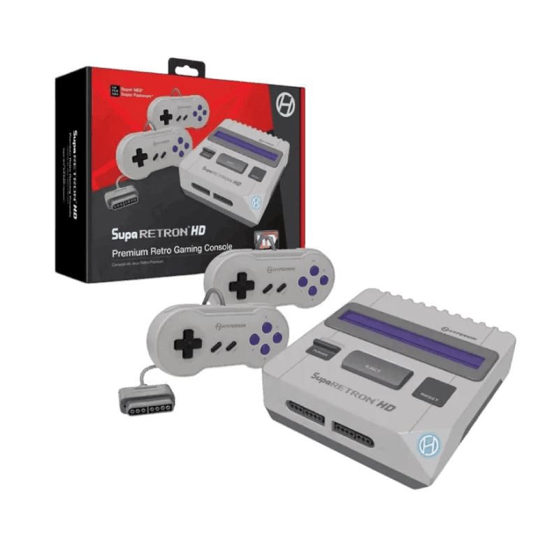 Revive la época dorada de los videojuegos con un toque moderno. La Supa RetroN HD es una consola compacta diseñada para reproducir cartuchos originales de 16 bits de sistemas SUPER NINTENDO y SUPER FAMICOM (americanos y japoneses). Compatible con formatos NTSC y PAL, ofrece imágenes nítidas en 720p y sonido estéreo a través de HDMI, además de salida AV para configuraciones tradicionales.